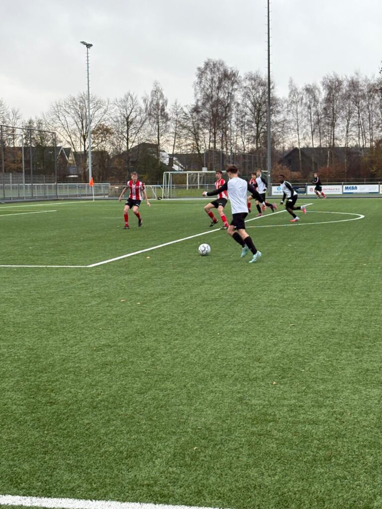 De tweede helft begon en de Friese Boys JO 19-1 hadden door dat er vandaag wat te halen viel. Vol goede moed werd met de tweede helft begonnen. Na een eerste plaagstootje van Drachtster Boys JO 19-2, waren het de Friese Boys JO 19-1 dit resulteerde in de vierde minuut in de aansluitingstreffer door Jurjen 3-2. Slechts één minuut later was daar een grote kans voor Hendrik door een prachtige actie van Jarno, maar de keeper van Drachtster Boys JO 19-2 redde. Toch gingen de Friese Boys JO 19-1 ook wel door het oog van de naald met een bal op de paal in de 53ste minuut. In de tweede helft waren de Friese Boys JO 19-1 beter en feller dan in de eerste helft. In de 65ste minuut was er daardoor een grote kans voor Jurjen maar de prima keepende keeper van Drachtster Boys JO 19-2 wist dit te voorkomen. Hierna begon de sterke voorhoede van Drachtster Boys JO 19-2 weer op stoom te komen en werd de verdediging van Friese Boys JO 19-1 onder druk gezet. Toch wisten ze niet van wijken en werd er een prima tweede helft gespeeld tegen een sterke tegenstander. Met ook nog kansen voor Mikai, Hendrik en Tjitze hobbelde de wedstrijd naar het einde en werd de eindstand bepaald op 3-2. Helaas geen punten mee maar wel een uitslag waar de Friese Boys JO 19-1 mee kan leven. Volgende week 13 december mogen de Friese Boys JO 19-1 verwelkomen op sportpark de Seadkampe V en V`68 JO 19-1.