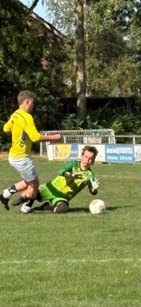 De tweede helft begon en eigenlijk ging Geel Wit door met waar ze de eerste helft mee waren begonnen, de Friese Boys JO 19-1 onder druk zetten. Konden de Friese Boys JO 19-1 zich weer oprichten en dan vandaag maar lelijk gelijk spelen of winnen? Na een avondje in de feesttent was het eigenlijk niet vreemd dat het vandaag een pittig potje zou worden. De beide ploegen waren in het begin van de tweede helft aan elkaar gewaagd en de strijdvaardigheid was er wel. Na wat aanvallen van Geel Wit JO 19-1 die werden gepareerd door de verdediging en Klaas Pieter, waren het de Friese Boys JO 19-1 die een kans kregen. Jurjen stormde op de keeper af maar wist er niet door te komen. Wieger kreeg daarna de bal in de voeten maar kon dit helaas niet afronden. Ook Jaryk die vandaag zeker aan zijn 4 de long weer begon schoot naast. In de 58ste minuut was het Geel Wit JO 19-1 die een grote kans kreeg, maar toch niet wist te scoren. Langzamerhand begonnen de trainers en leiders erin te geloven dat een gelijkspel en misschien de winst er ook nog wel in zat. Die werd in 61ste minuut de grond in geboord toen Geel Wit JO 19-1 wist te scoren 0-1. Er was nog een half uur maar de Friese Boys JO 19-1 kregen vandaag gewoon geen grip op de wedstrijd en de daarna opvolgende kansen waren veel voor Geel Wit JO 19-1 die gewoon een prima wedstrijd speelden. Aan de inzet van de Friese Boys JO 19-1 lag het gewoon ook niet, het lukte vandaag gewoon niet en daar was wel een verklaring voor. Zo hobbelde wedstrijd naar het einde toe, met nog kansen voor beide teams. Toen de prima fluitende scheidsrechter Hielke de Graaf de wedstrijd affloot, kon een ieder leven met het resultaat. Deze wedstrijd snel vergeten en volgende week weer vol goede moed richting VC Trynwalden JO 19-1.